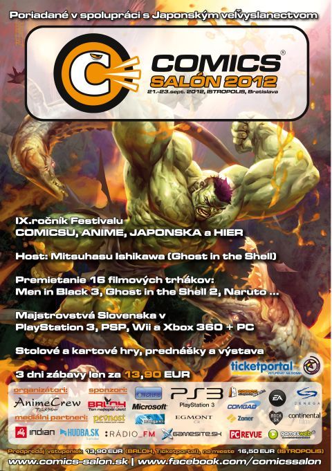 Pozývame vás na 25. ročník medzinárodného festivalu filmov, scifi, fantasy, hororu, larpov a spoločenských hier, Istrocon 2012, toho roku spojený s 31. ročníkom Parconu, a zároveň na Comics Salón, 9. ročník medzinárodného festivalu komiksu, anime, japonskej kultúry, počítačových hier a všetkých elementov dobrej zábavy. Termín a miesto konania: 21. – 23. september 2012, Istropolis, Trnavské Mýto 1, Bratislava.