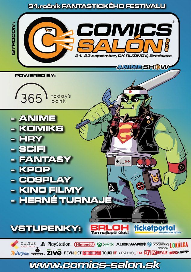 V dňoch 21. – 23. septembra 2018 sa v bratislavskom Dome kultúry Ružinov uskutoční už 31. ročník medzinárodného festivalu popkultúry Comics Salón 2018. Festival organizuje nezisková organizácia OZ AnimeCrew v spolupráci s generálnym partnerom 365.bank, Veľvyslanectvom Japonska v Slovenskej republike, SECTOR.sk a s ďalšími partnermi.
