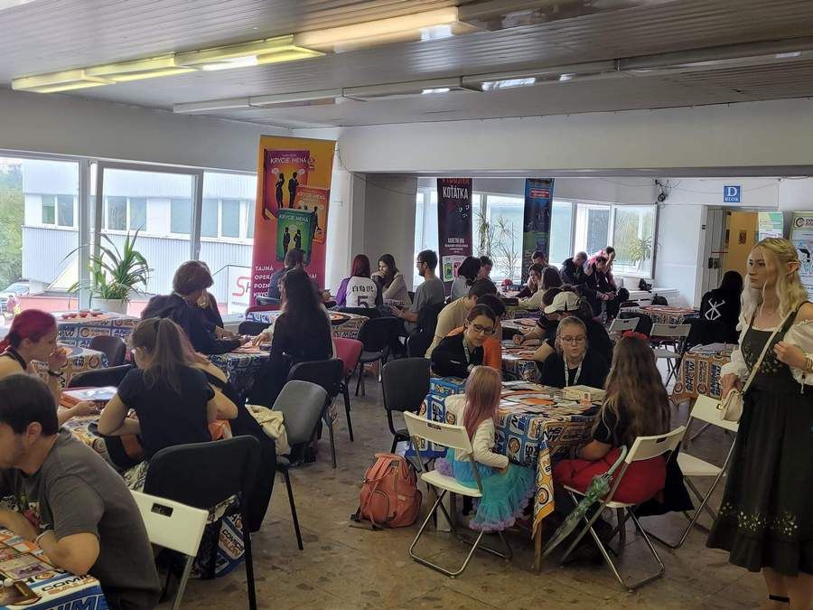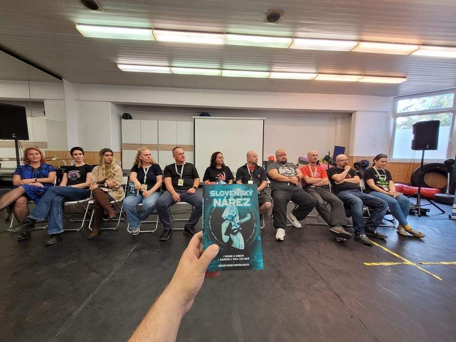 Dievčatá pri stole, ktorý bol vyhradený pre aktivity scifi.sk, boli ochotné jej pomôcť, za čo im patrí vďaka. Ja som sa zasa nechal nahovoriť na scifi anime kvíz. Tento subžáner nie je mojou silnou stránkou, získal som sedem bodov z dvadsiatich. Test bol náročný, no moje uznanie patrí pánovi, ktorý dokázal získať sedemnásť bodov. V Game salóne s medzitým hrala hra na hrdinov Dračí hlídka. Je to česká hra, ktorú v roku 2020 vytvorili ako duchovného nástupcu populárnej hry Dračie dúpä. Jedným z jej hráčov bol aj spisovateľ Marián Kubicsko, ktorý sa tam schovával pred otázkami fanúšikov. Aj ja som sa ho pýtal, hlavne na pokračovanie série Potvorobijci. Tu je pár informácií od neho: Potvorobijci 3 – Dušičkový masaker sú skoro dopísaní, chýba asi 40 strán, Potvorobijci 4 – Prekliate hradisko sú dokončení. Hotové sú aj pokračovania knihy Kráľovstvo plchov. Nesú názvy Kráľ a Kráľovná. A poslednou dokončenou knihou je Grumba a jeho najväčšie dobrodružstvo. Ako vidieť, Marián je plodný autor, ale všetko má svoj čas. Dúfam, že čoskoro všetky jeho knihy prídu do kníhkupectiev.