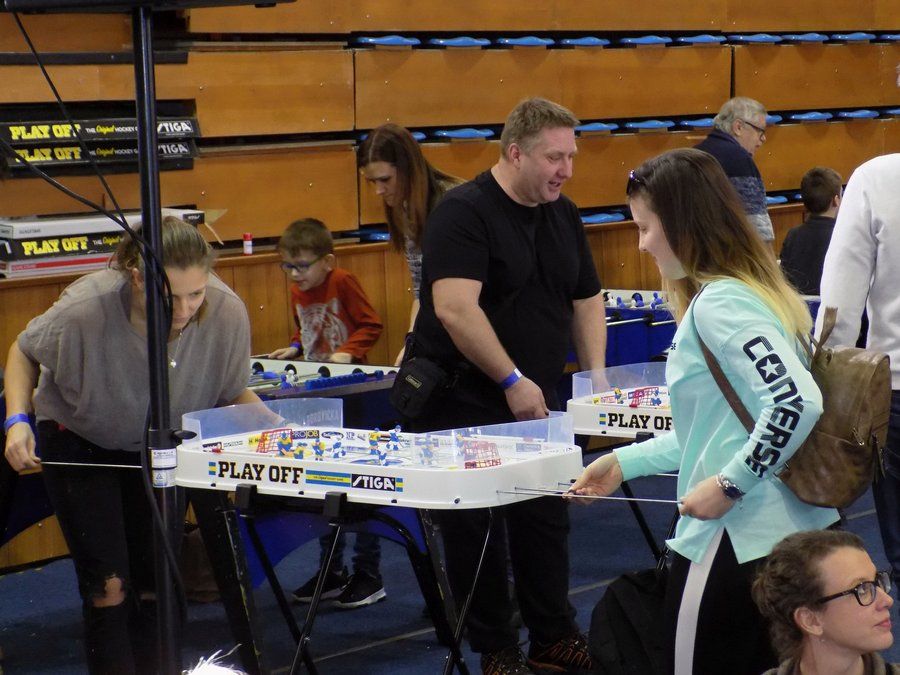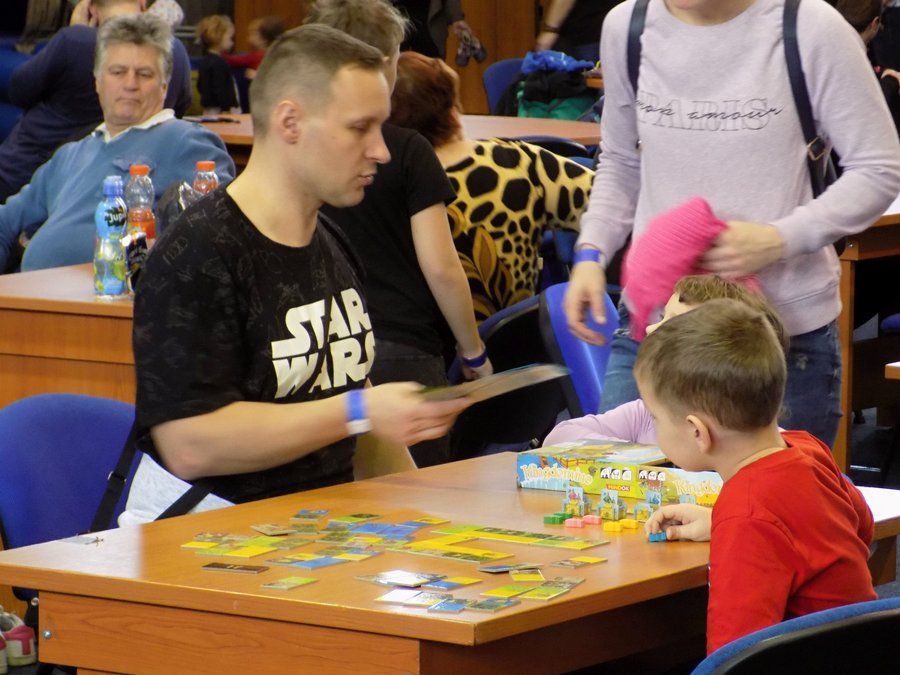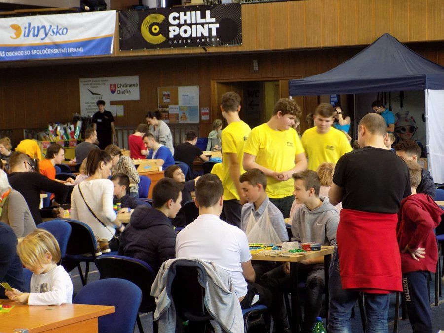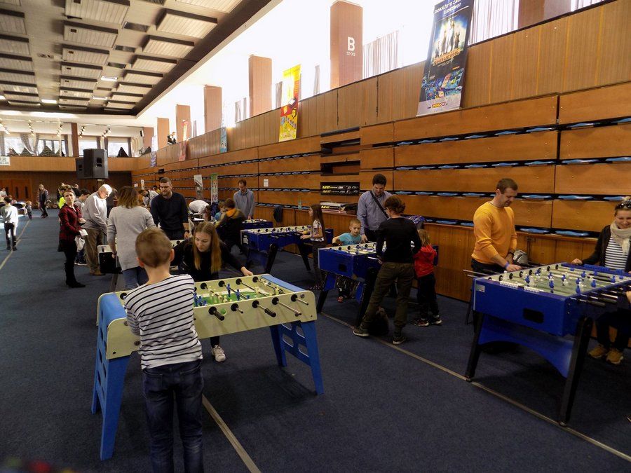 Na miesto sme dorazili krátko po desiatej hodine. Rýchlo sme si odložili veci do šatne, vybavili vstupné a vošli do haly. Návštevníkov bolo pomenej, niektoré atrakcie zívali prázdnotou. Ale predpokladal som, že popoludní sa hala zaplní do posledného miesta. Celú jednu stranu zaberali štyri nafukovacie atrakcie, ktoré boli hlavným lákadlom pre všetky deti. Strednej časti dominovali stoly s rozličnými doskovými a kartovými hrami. Tie priniesla spoločnosť iHRYsko.sk, ktorá sa pravidelne zúčastňuje podobných podujatí. Mohli ste si zahrať napr. Citadelu, Sagradu, Želví závody a iné. Stretnúť ich môžete napríklad aj na AnimeShow či Comics Salóne. Ďalšiu časť hracej plochy zaberali herné stoly, kde ste si mohli zahrať futbal či hokej. Vedľa nich bola rozložená hra „šúľaná“, ktorá sa na Festhrách predstavila minulý rok. Nechýbali vystavovatelia ako Makura či Kidmánia, ktorí sa zameriavajú predovšetkým na najmenších „hráčov“.